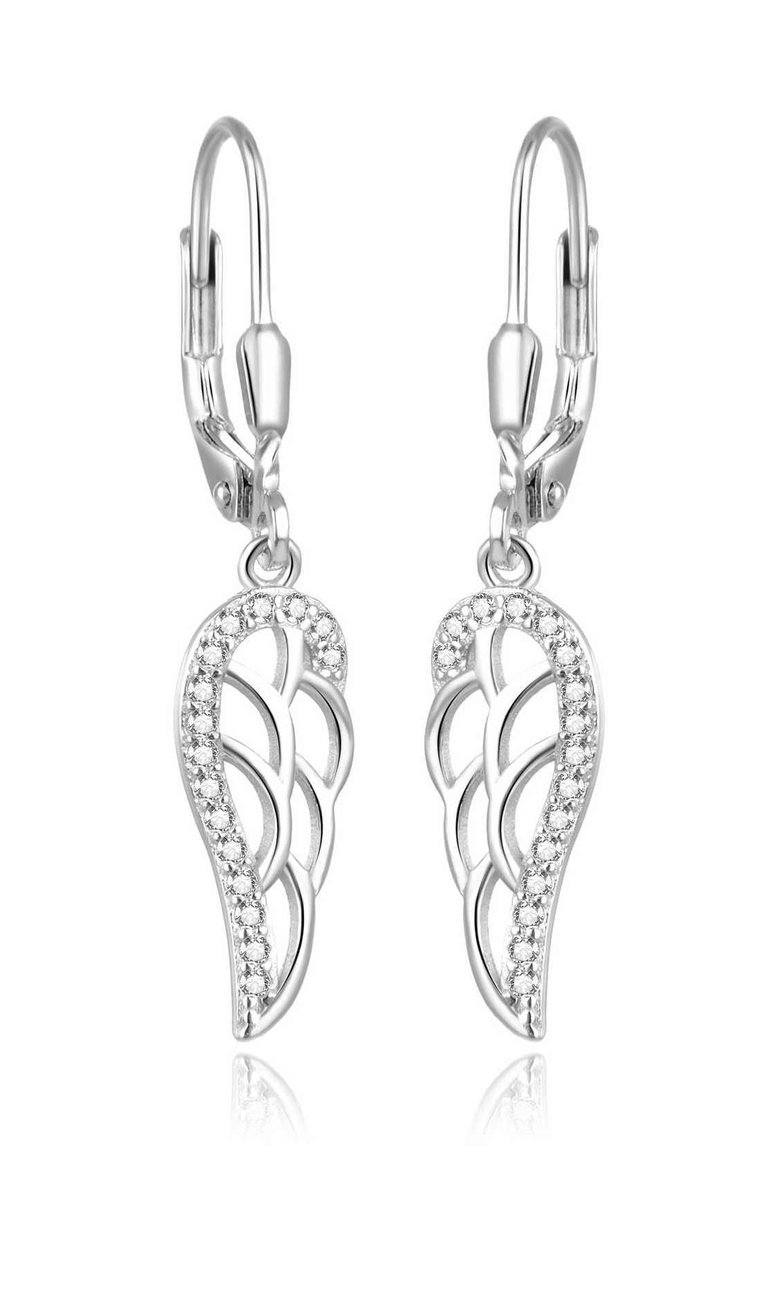 Beneto Elegantní stříbrné náušnice s čirými zirkony Andělská křídla AGUC2585L