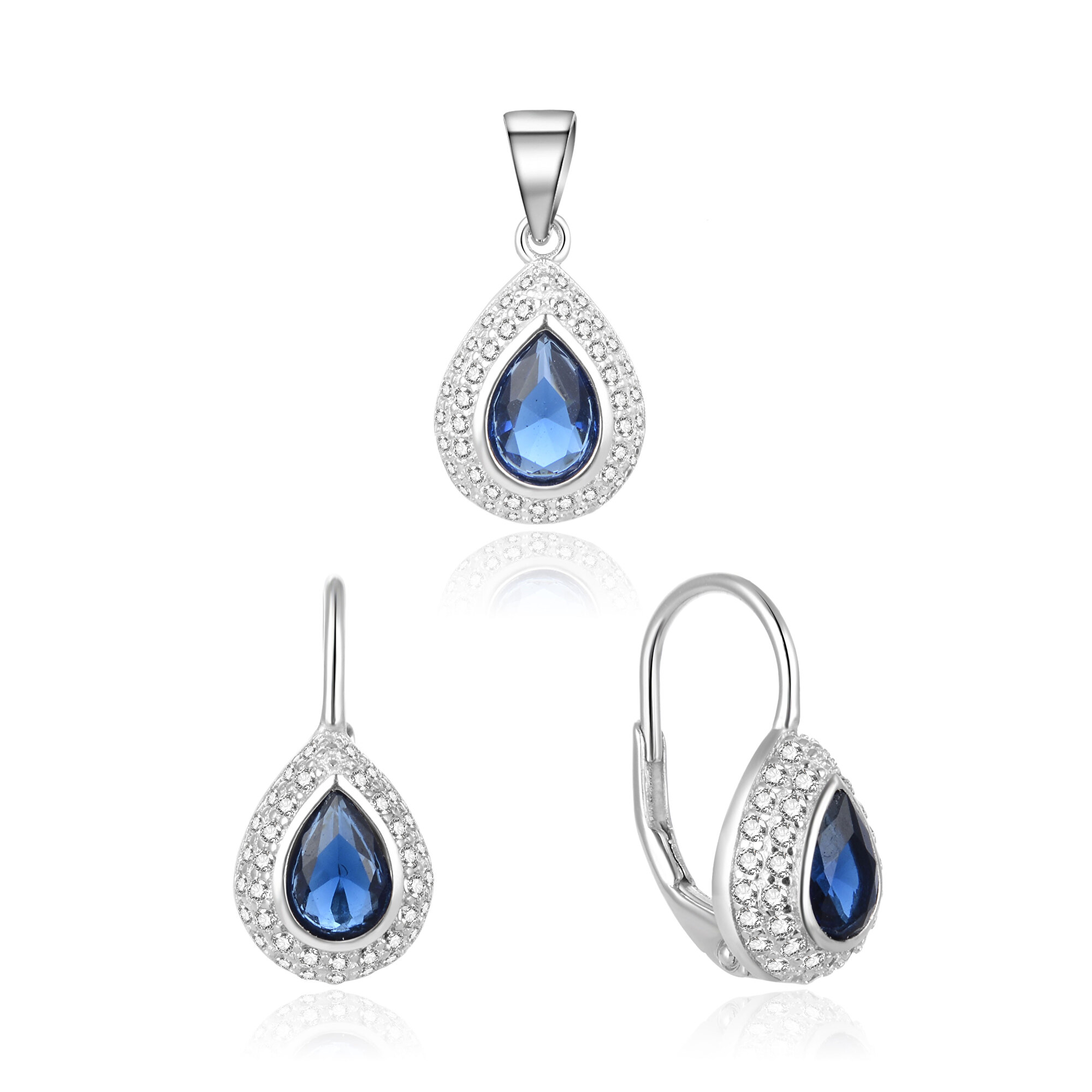 Beneto Stříbrná souprava šperků s modrými zirkony AGSET174L (přívěsek, náušnice)