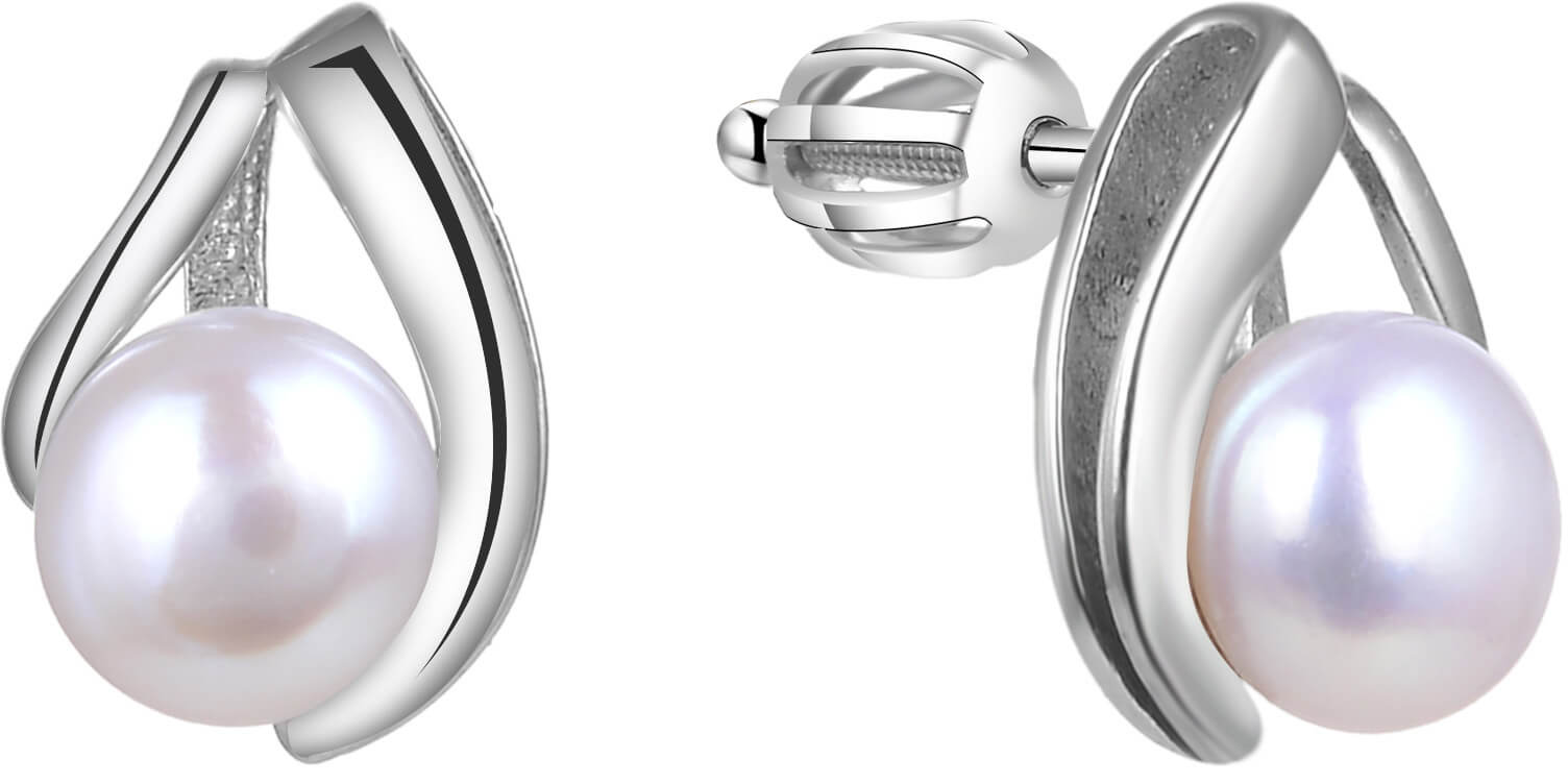 Beneto Stříbrné náušnice s pravou perlou TAGUP1665PS