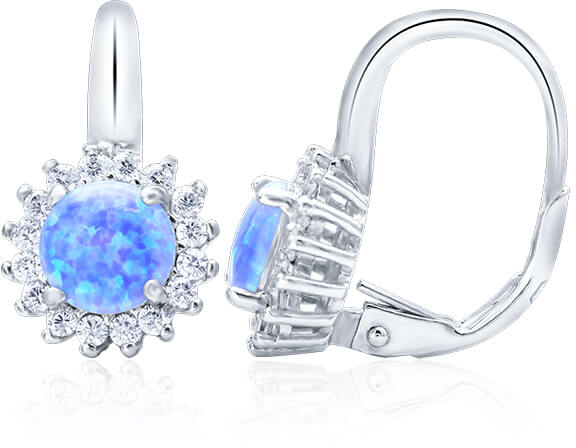 Beneto Stříbrné náušnice se syntetickým opálem AGUC1204
