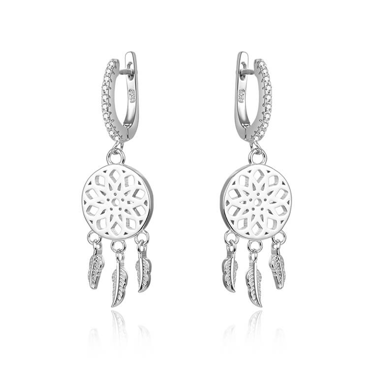 Beneto Stříbrné náušnice se zirkony lapače snů AGUC1976