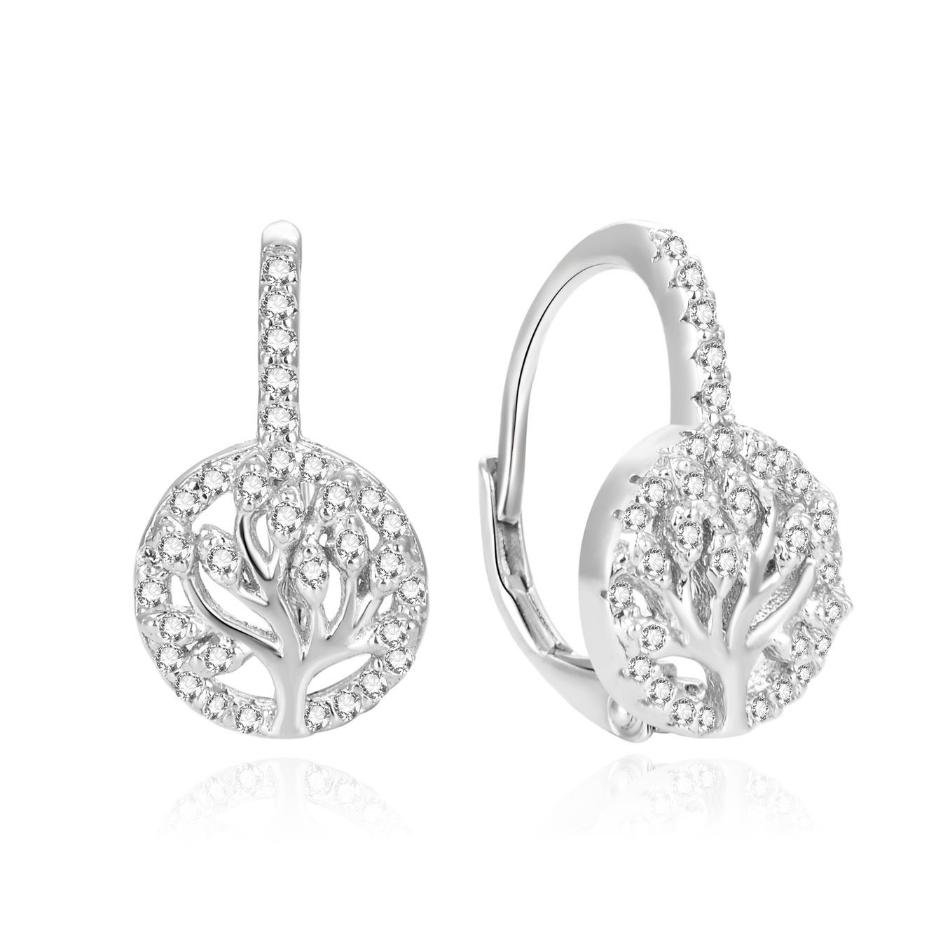 Beneto Třpytivé stříbrné náušnice se zirkony Strom života AGUC386L