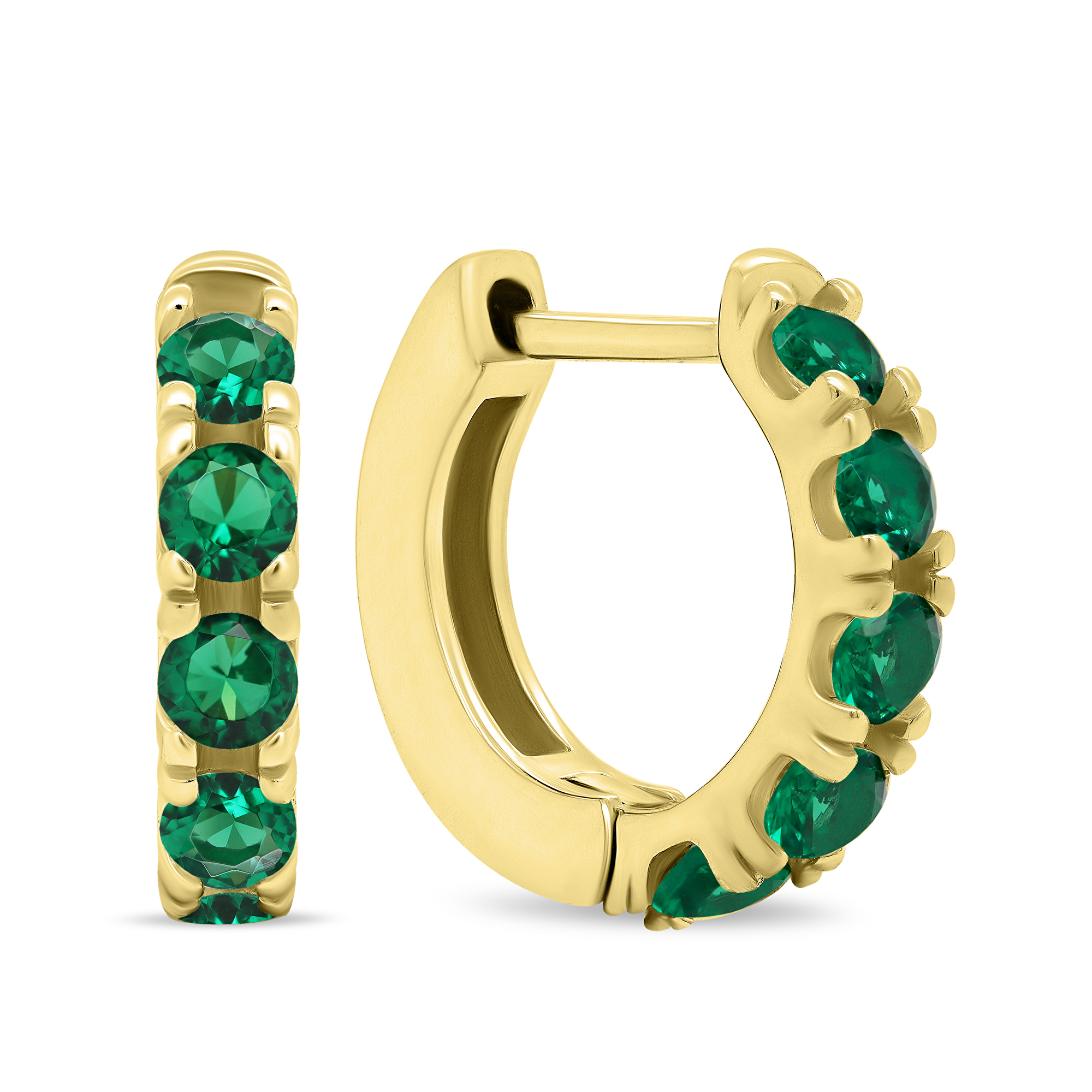 Brilio Silver Drobné pozlacené kroužky se zelenými zirkony EA481YG
