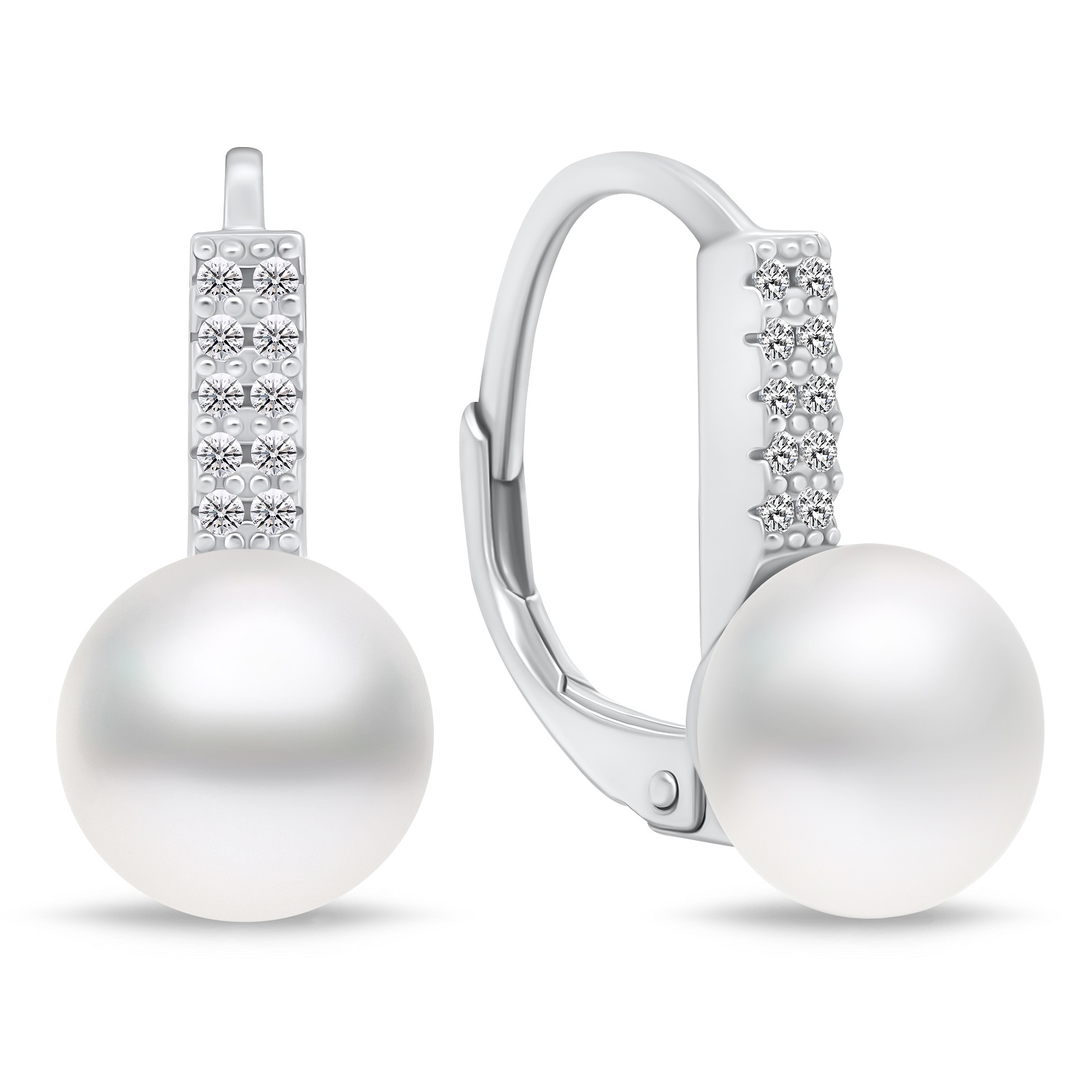 Brilio Silver Půvabné stříbrné náušnice s perlou a zirkony EA94