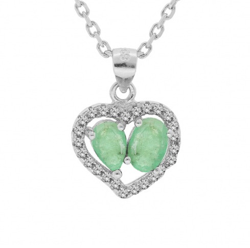 Brilio Silver Půvabný stříbrný náhrdelník se smaragdy CL-FS-5648E (řetízek, přívěsek)