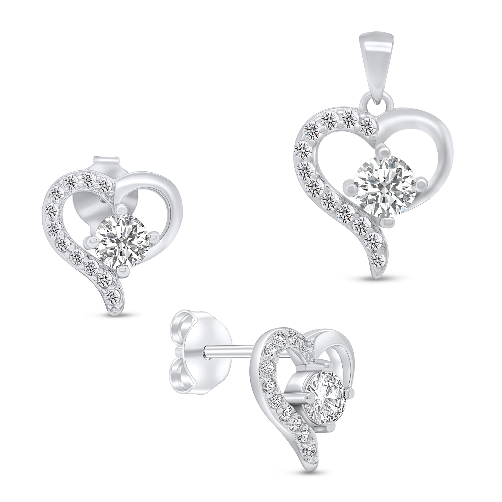 Brilio Silver Set stříbrných šperků Srdíčka se zirkony SET219W (přívěsek, náušnice)