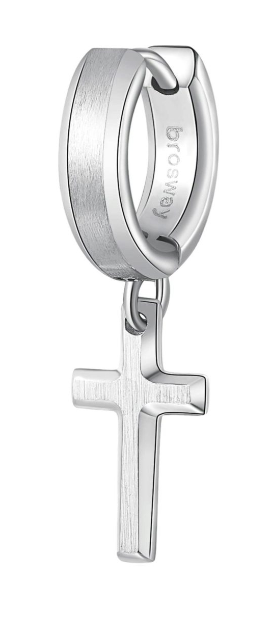 Brosway Moderní ocelová single náušnice Křížek Ink BIK27