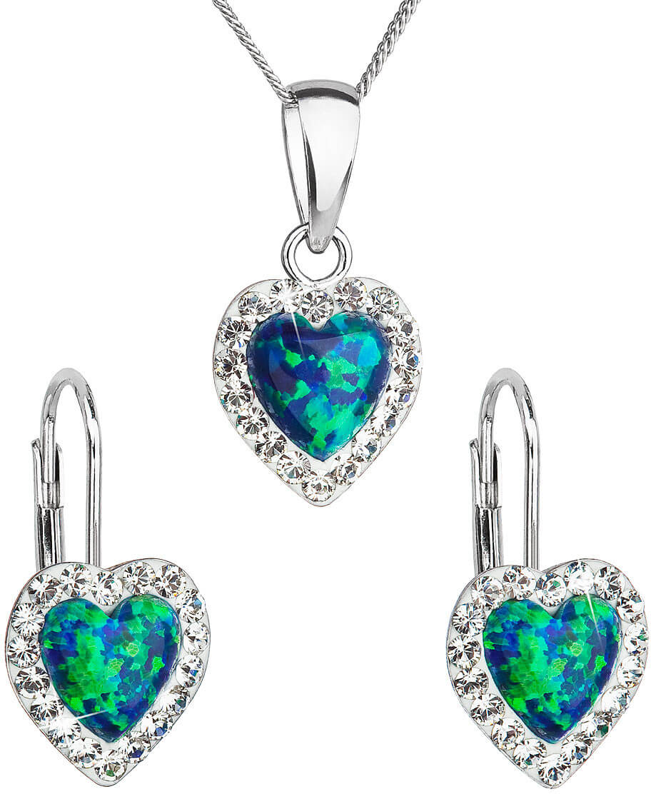 Evolution Group – Pavona Srdíčková souprava šperků s krystaly Preciosa 39161.1 & green s.opal (náušnice, řetízek, přívěsek)