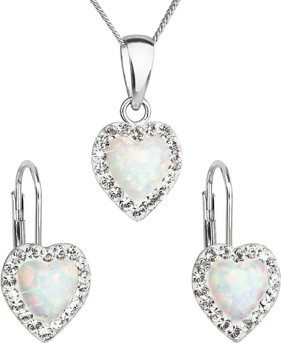 Evolution Group – Pavona srdíčková souprava šperků s krystaly Preciosa 39161.1 & white s.opal (náušnice, řetízek, přívěsek)