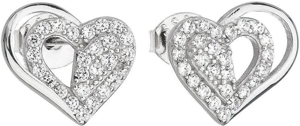 Evolution Group – Pavona Stříbrné náušnice se zirkonem bílé srdce 11115.1