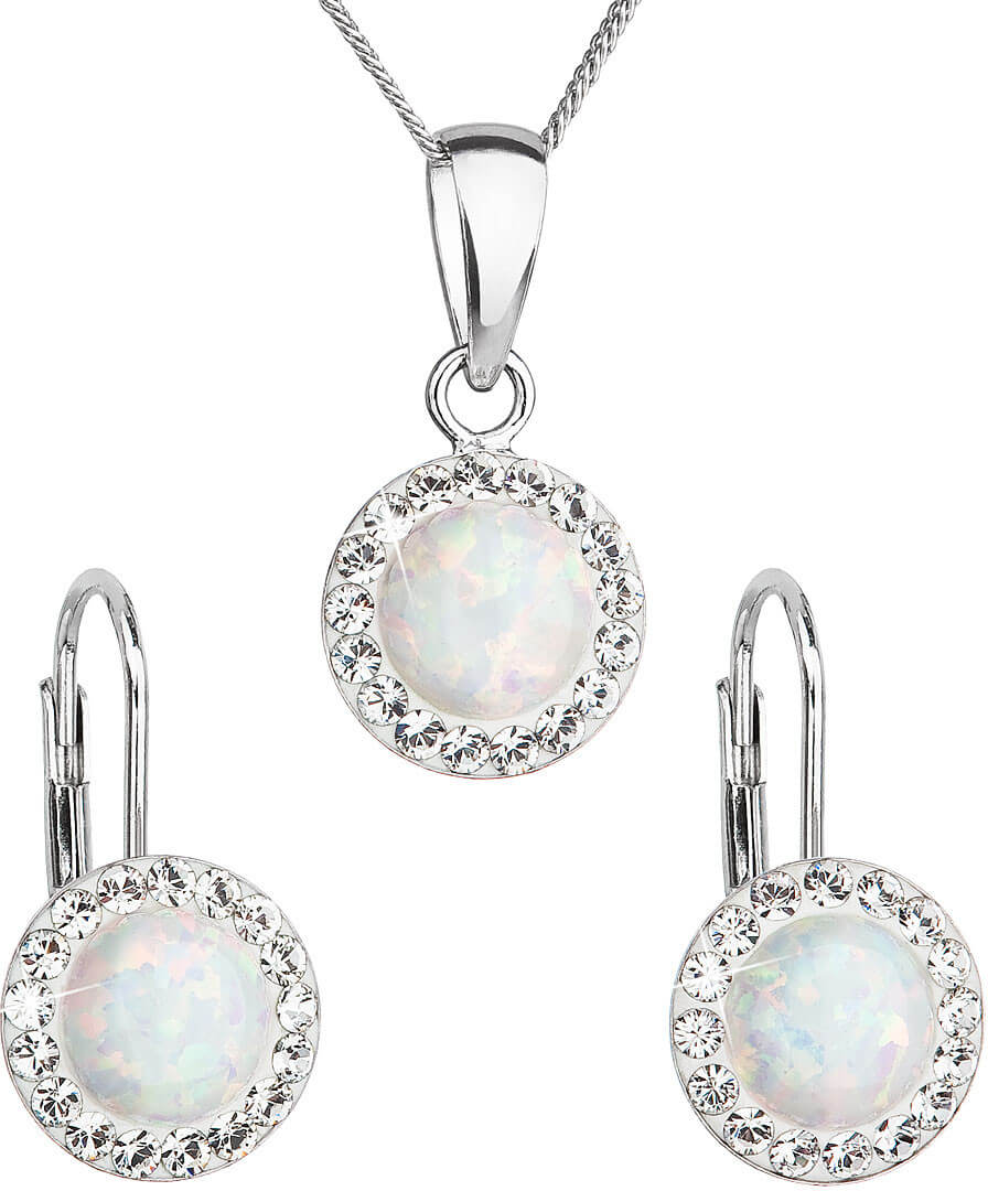 Evolution Group – Pavona Třpytivá souprava šperků s krystaly Preciosa 39160.1 & white s.opal (náušnice, řetízek, přívěsek)