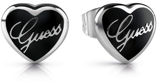 Guess Černé srdíčkové náušnice Never Without UBE28069
