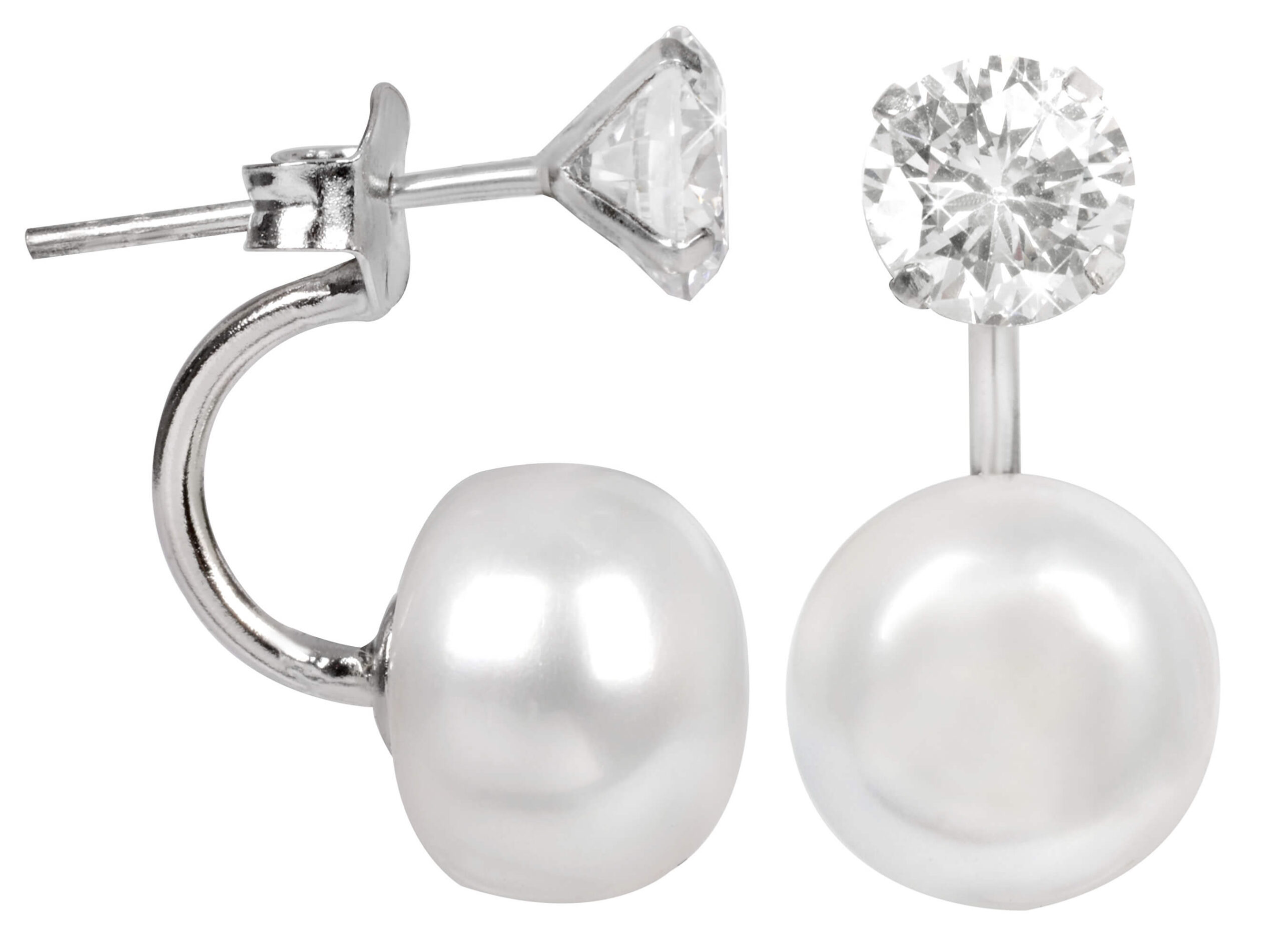 JwL Luxury Pearls Originální náušnice s pravou perlou a krystalem 2v1 JL0059