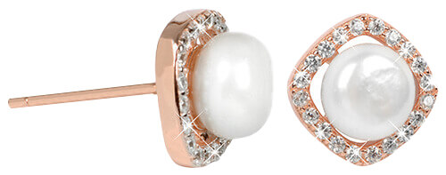 JwL Luxury Pearls Stříbrné rosegold náušnice s pravou bílou perlou a krystaly JL0252