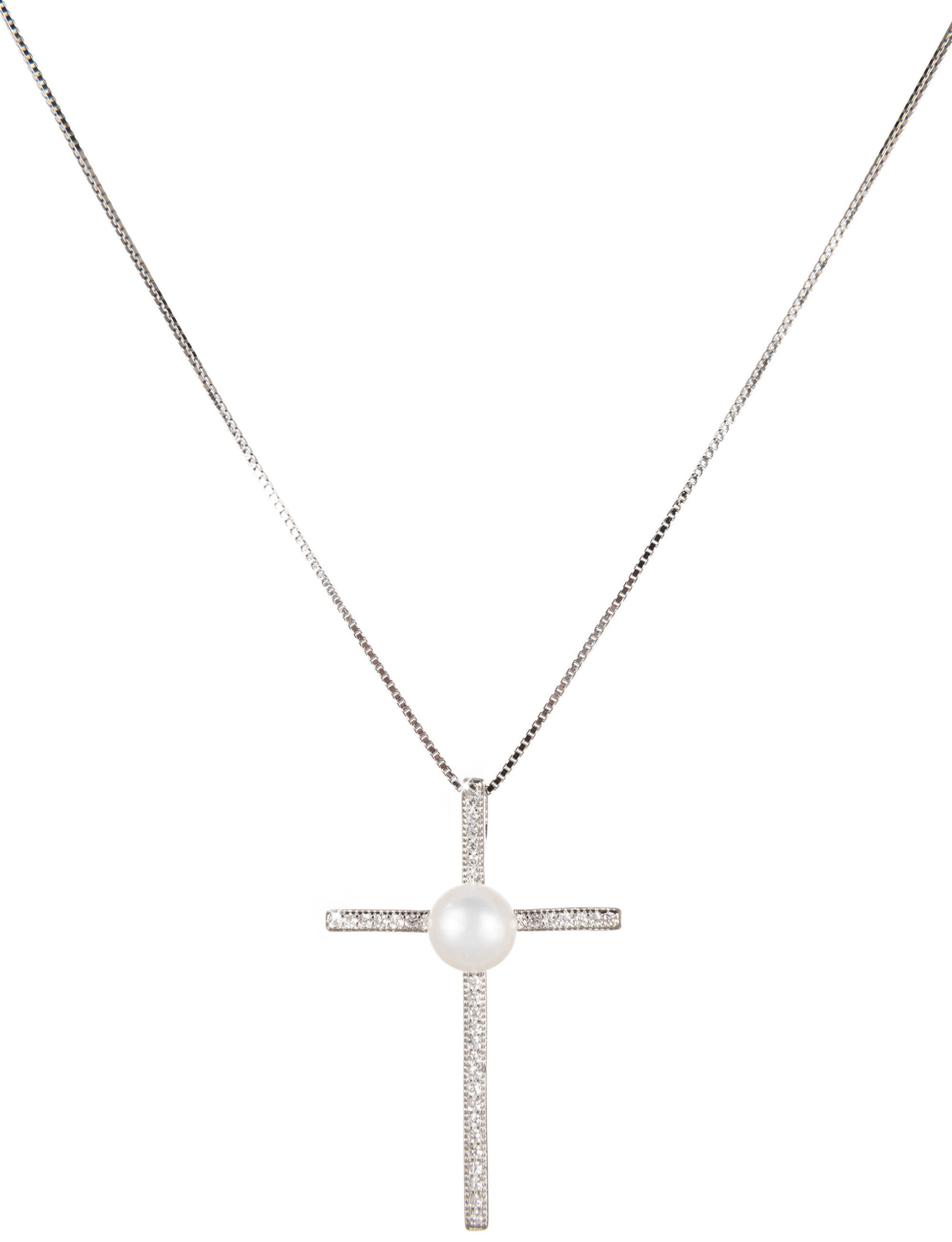 JwL Luxury Pearls Stříbrný náhrdelník Křížek s pravou perlou JL0455 (řetízek, přívěsek)