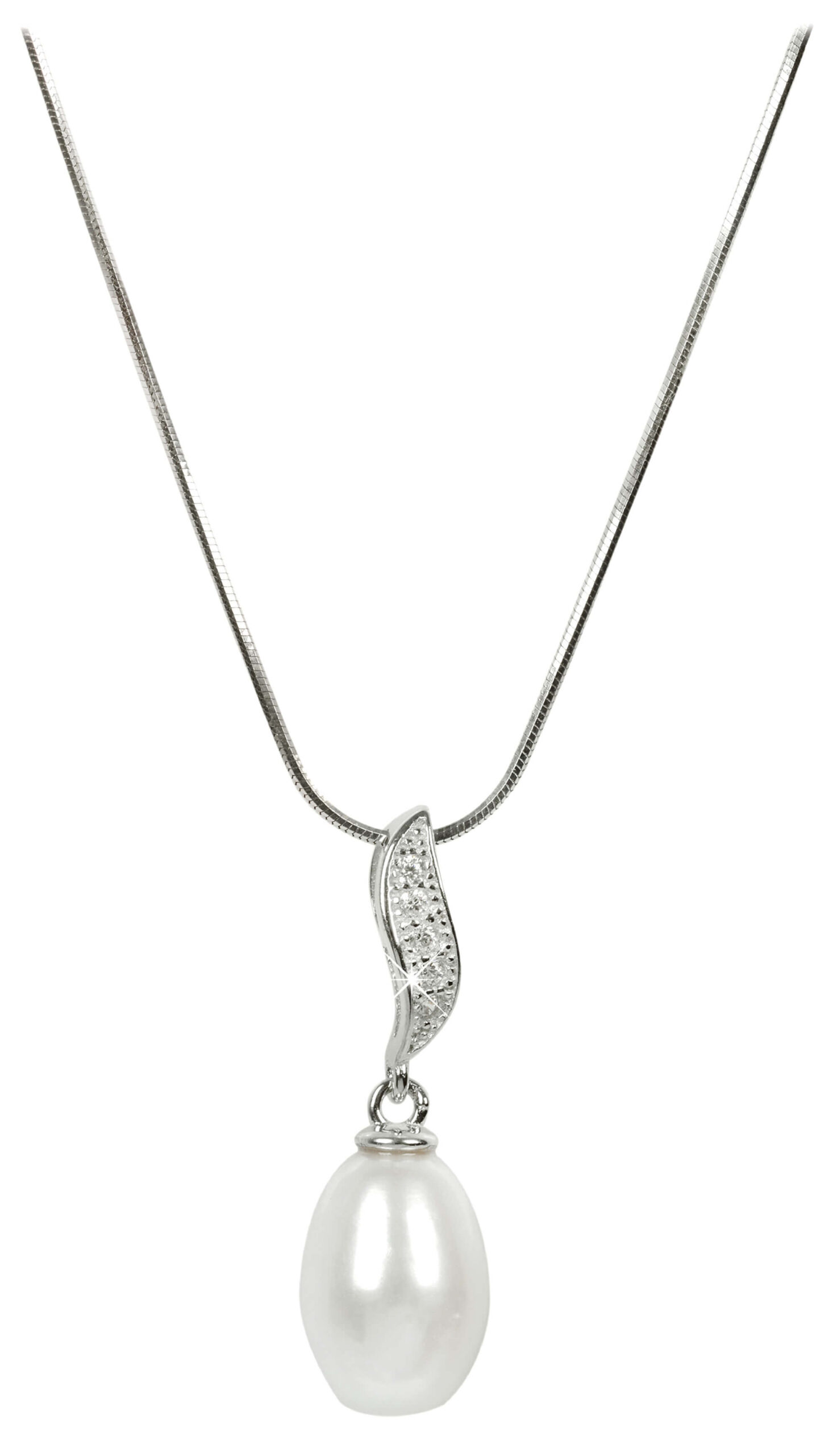 JwL Luxury Pearls Stříbrný náhrdelník s perlou a zirkony JL0200 (řetízek, přívěsek)