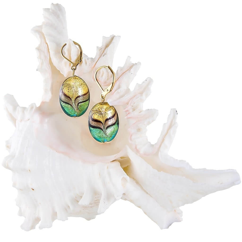 Lampglas Elegantní náušnice Green Sea World z perel Lampglas s 24karátovým zlatem EP26