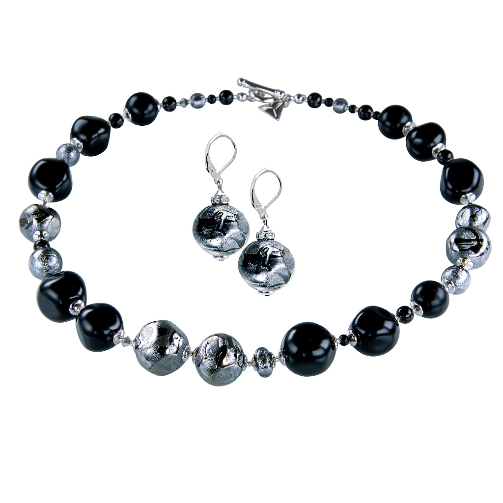 Lampglas Luxusní set náhrdelníku a náušnic Diamond Shine z perel Lampglas CQ7