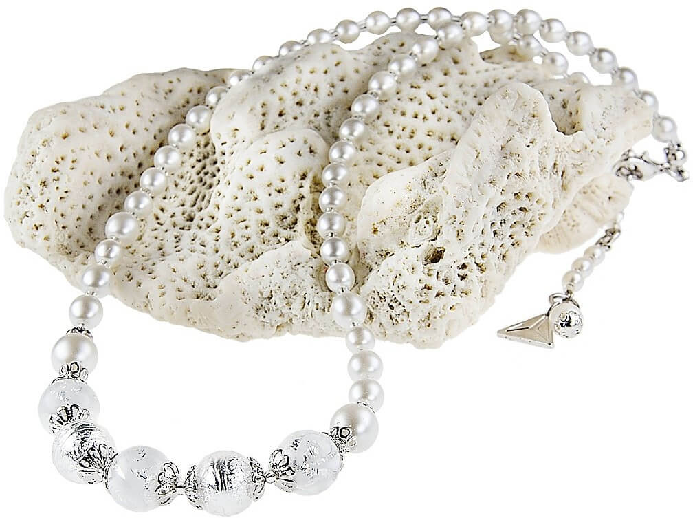 Lampglas Něžný náhrdelník White Romance s s ryzím stříbrem v perlách Lampglas NV1