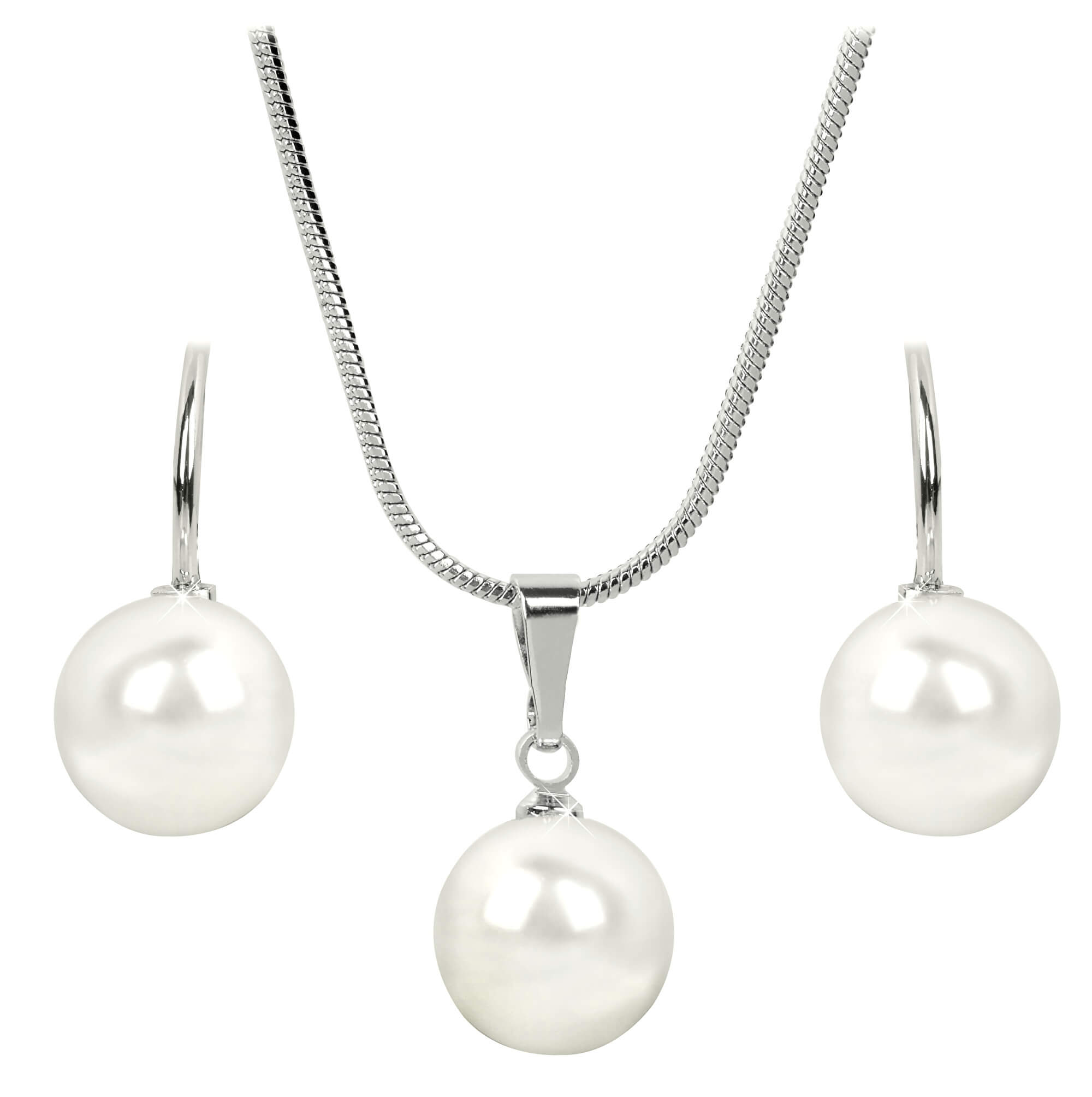 Levien Elegantní sada náhrdelníku a náušnic Pearl White