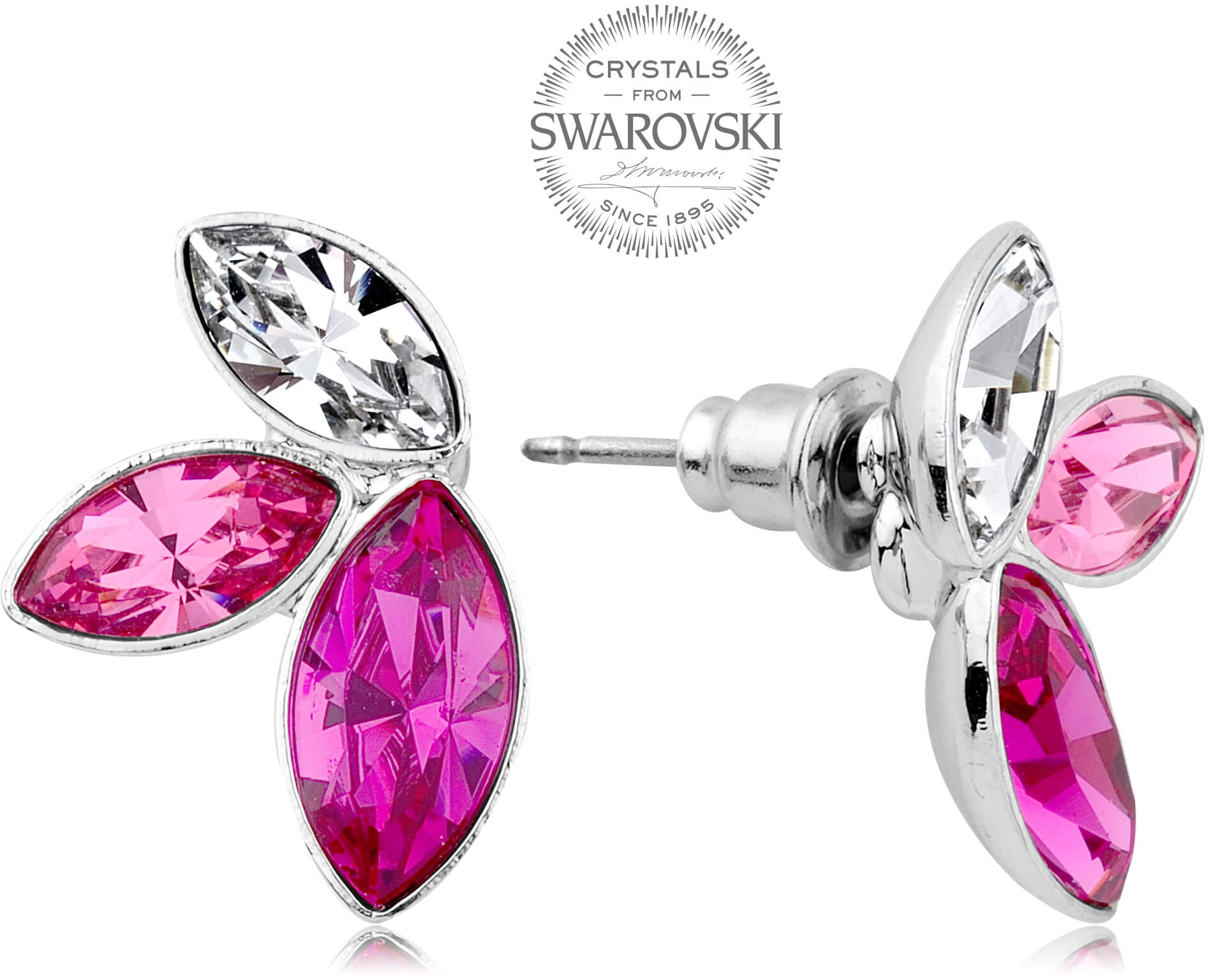Levien Náušnice se třemi krystaly v růžových odstínech Navette