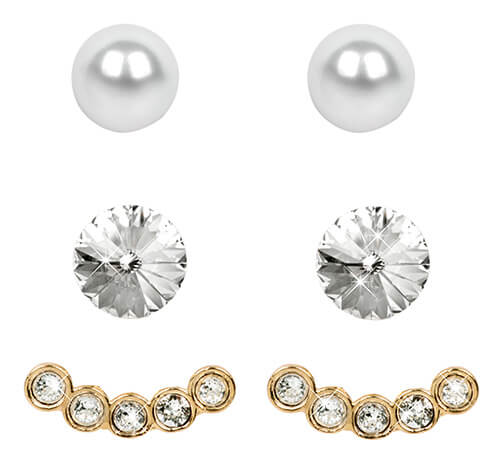 Levien Náušnice Set Ear Cuff 4 v 1 Gold Crystal White