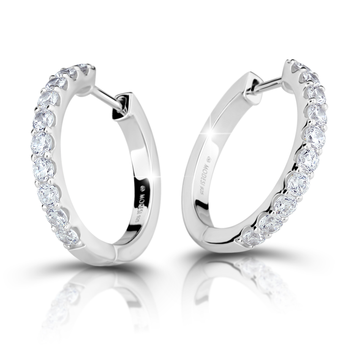 Modesi Třpytivé stříbrné kruhové náušnice se zirkony M23081