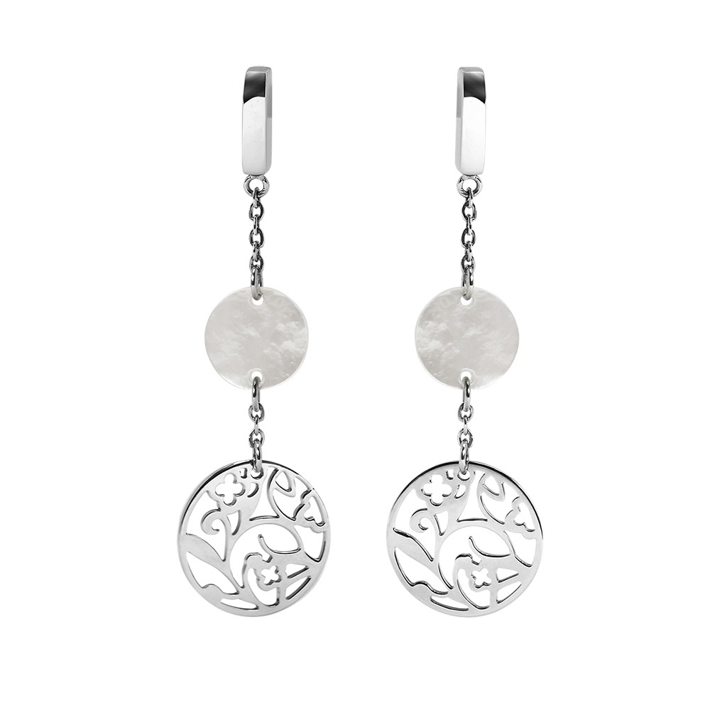 Pierre Lannier Dlouhé ocelové náušnice s perletí Eolia BJ03A2191