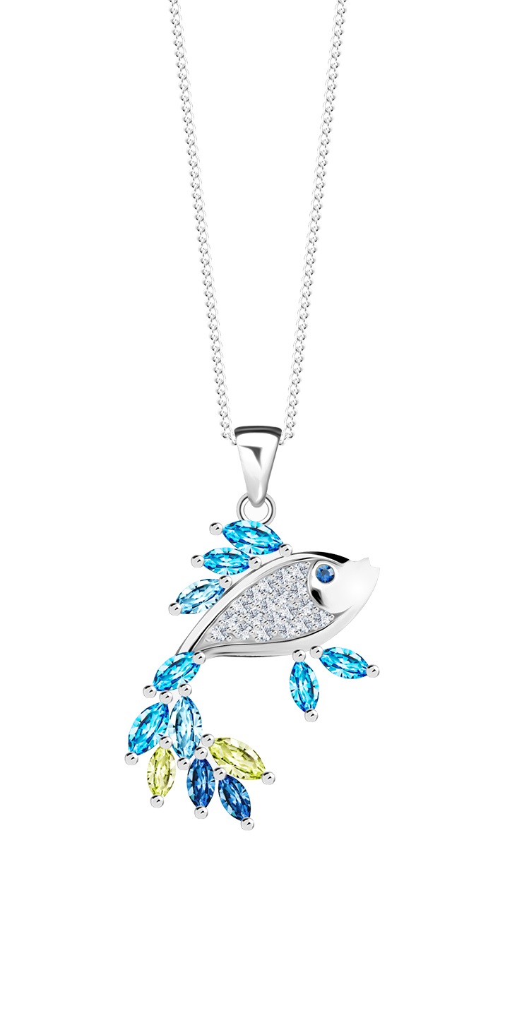 Preciosa Blyštivý náhrdelník Ryba s kubickou zirkonií Viva la Vida 5350 70