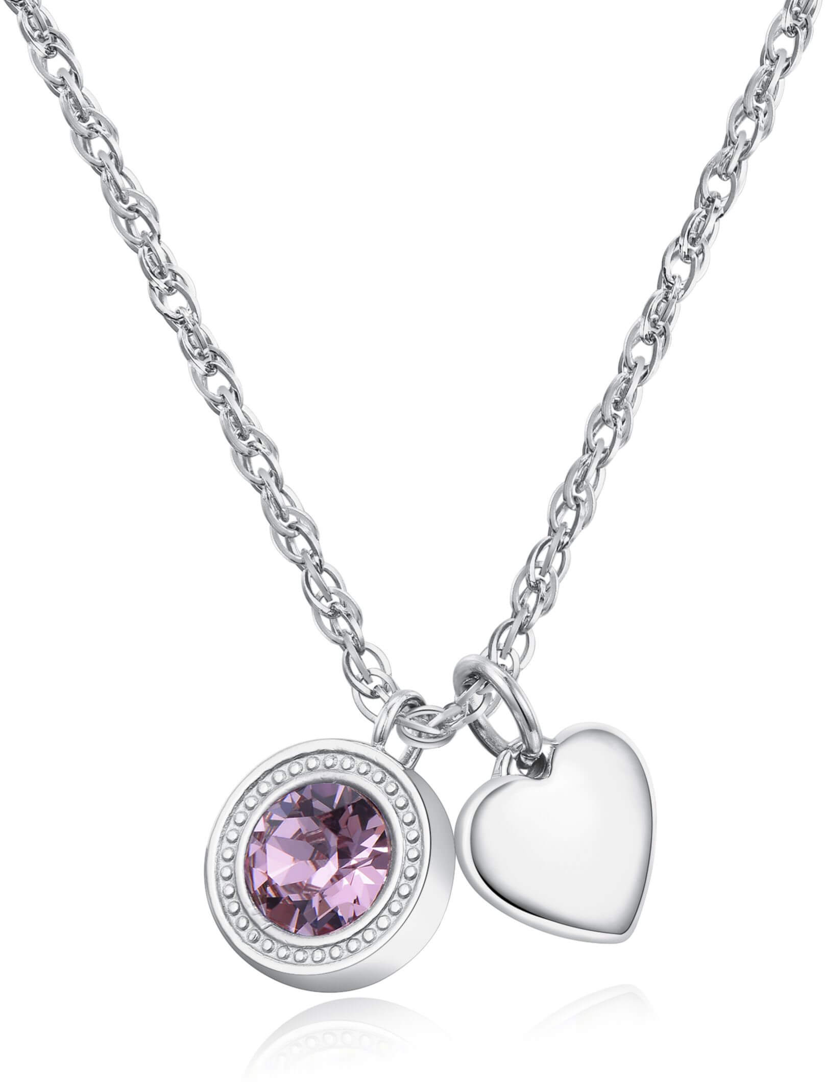 S'Agapõ ocelový náhrdelník s krystalem a srdíčkem Lucky Light SKT01