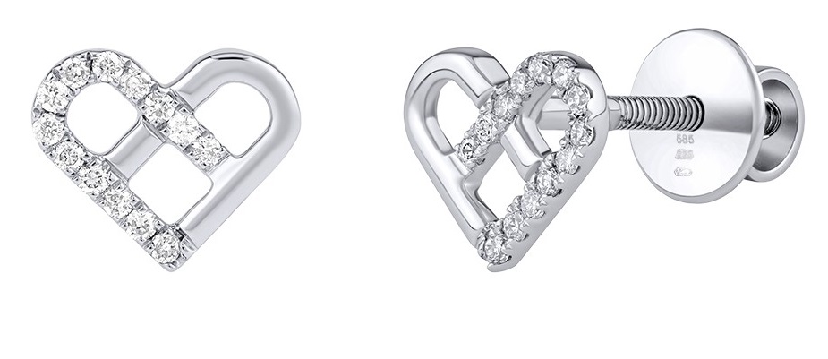 Silvego Diamantové náušnice srdce Evie v bílém zlatě DNN2590EGWD