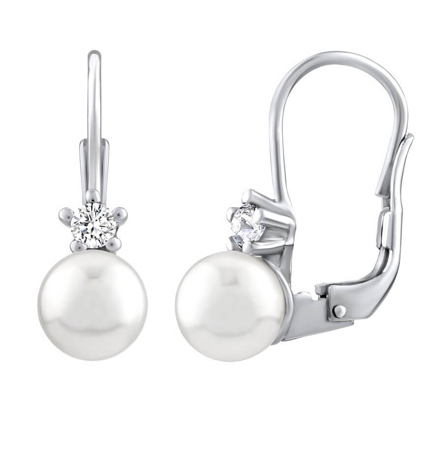 Silvego Něžné stříbrné náušnice s bílou perlou Swarovski SILVEGO35037W