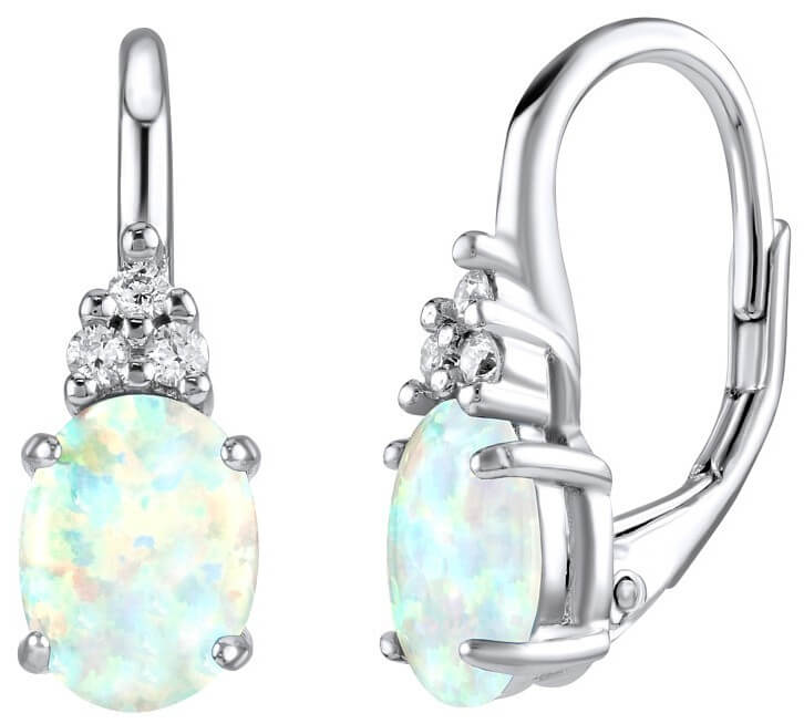 Silvego Stříbrné náušnice s bílým syntetickým opálem Olivia LPS1508W