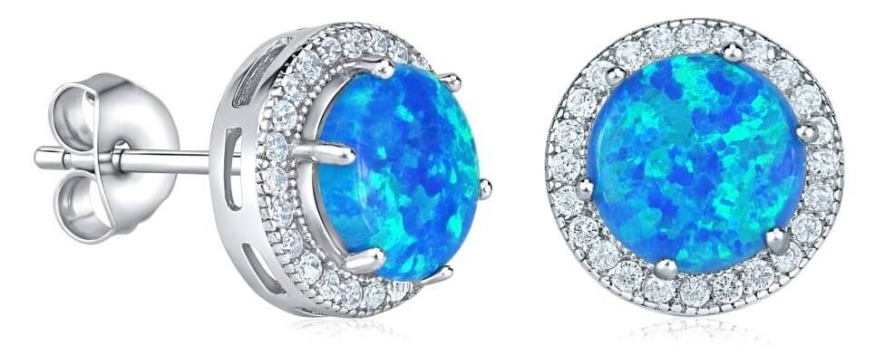 Silvego Stříbrné náušnice s modrým syntetickým opálem JJJEM0016C2