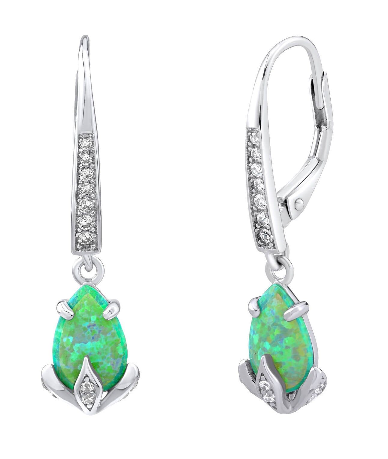 Silvego Stříbrné náušnice se zeleným syntetickým opálem JJJE1267G