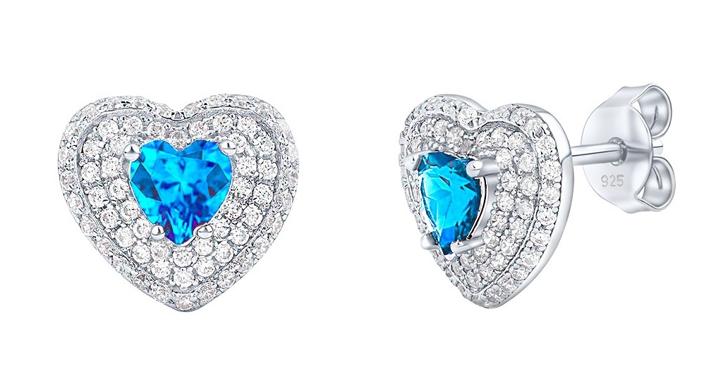 Silvego Stříbrné náušnice srdce Susan s pravým modrým topazem a Brilliance Zirconia MW11360ETS