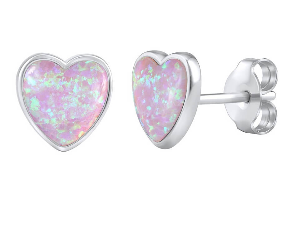 Silvego Stříbrné srdíčkové náušnice se syntetickými opály LPS0857P