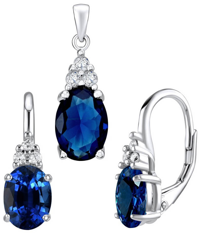 Silvego Stříbrný set JENNER se safírem LPS1381LB (náušnice, přívěsek)