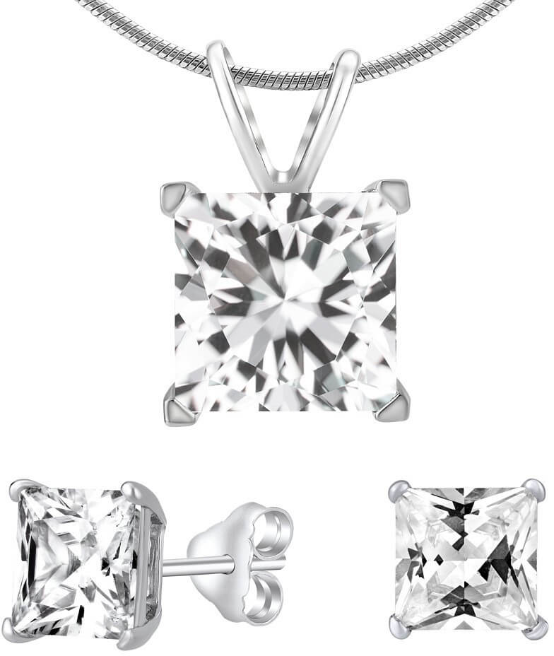 Silvego Stříbrný set šperků s čirým křišťálovým sklem JJJSQ55 (náušnice, přívěsek)