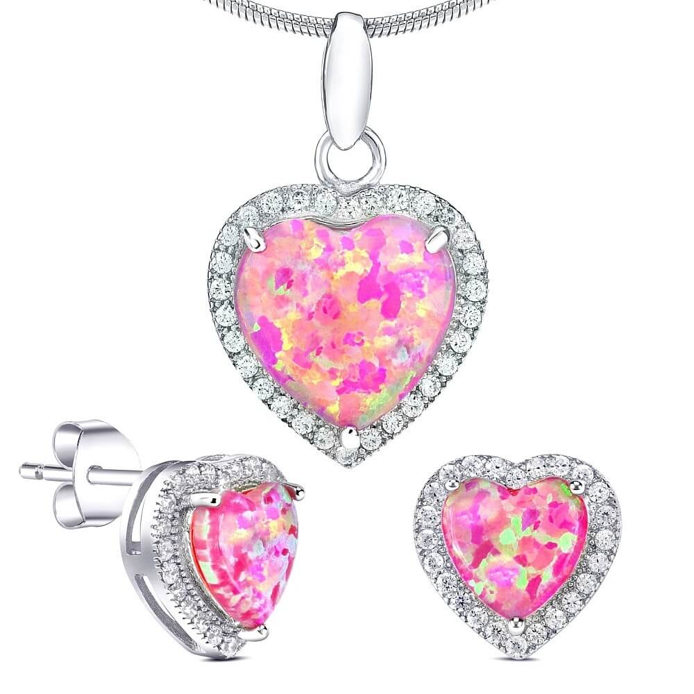 Silvego Stříbrný srdíčkový set se syntetickými opály JJJS0103C2 (náušnice, přívěsek)