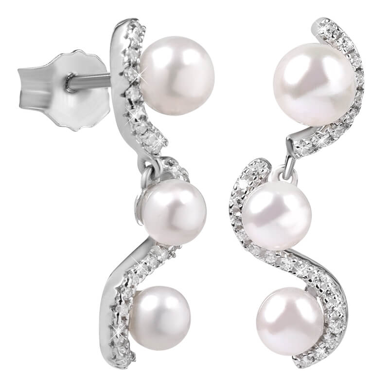 Silver Cat Úchvatné stříbrné náušnice se zirkony a perlou SC341