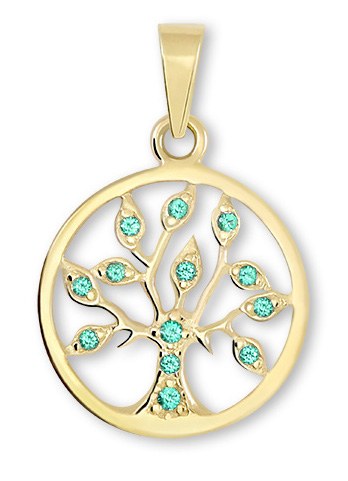 Soliter Zlatý přívěsek Strom života se zelenými krystaly 249 001 00442