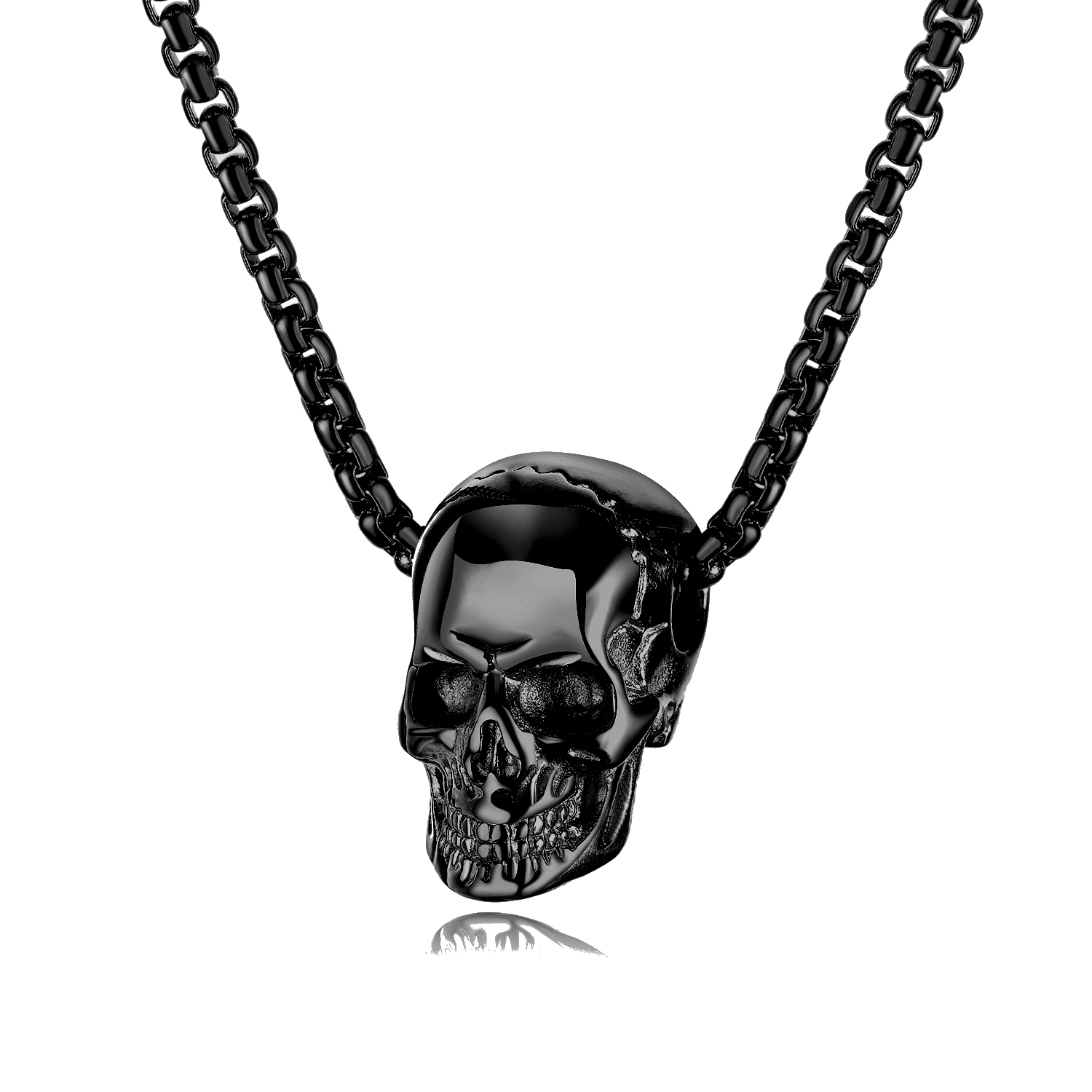 Troli Černý ocelový náhrdelník pro muže s lebkou
