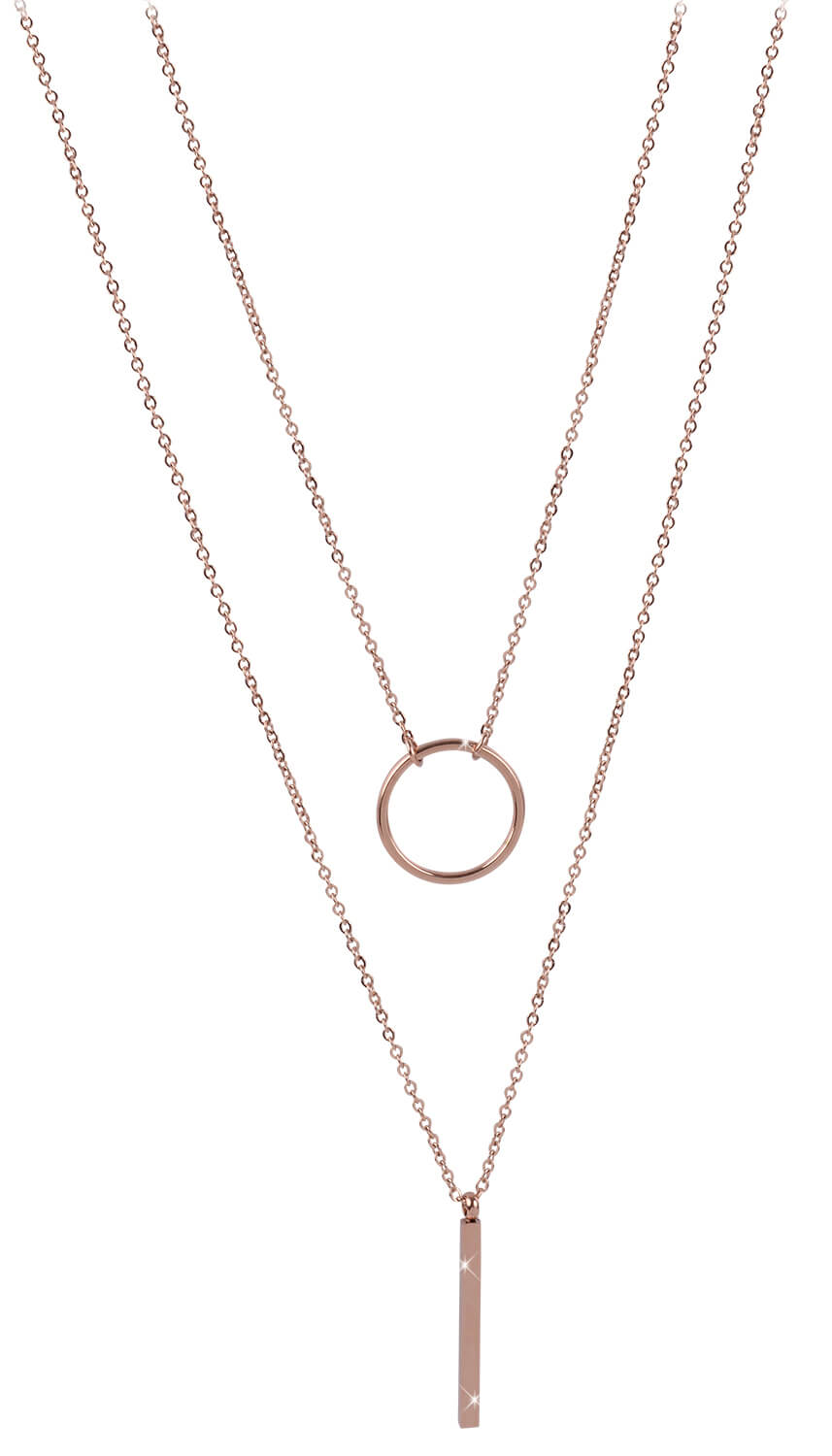 Troli Dvojitý náhrdelník se stylovými přívěsky z růžově pozlacené oceli