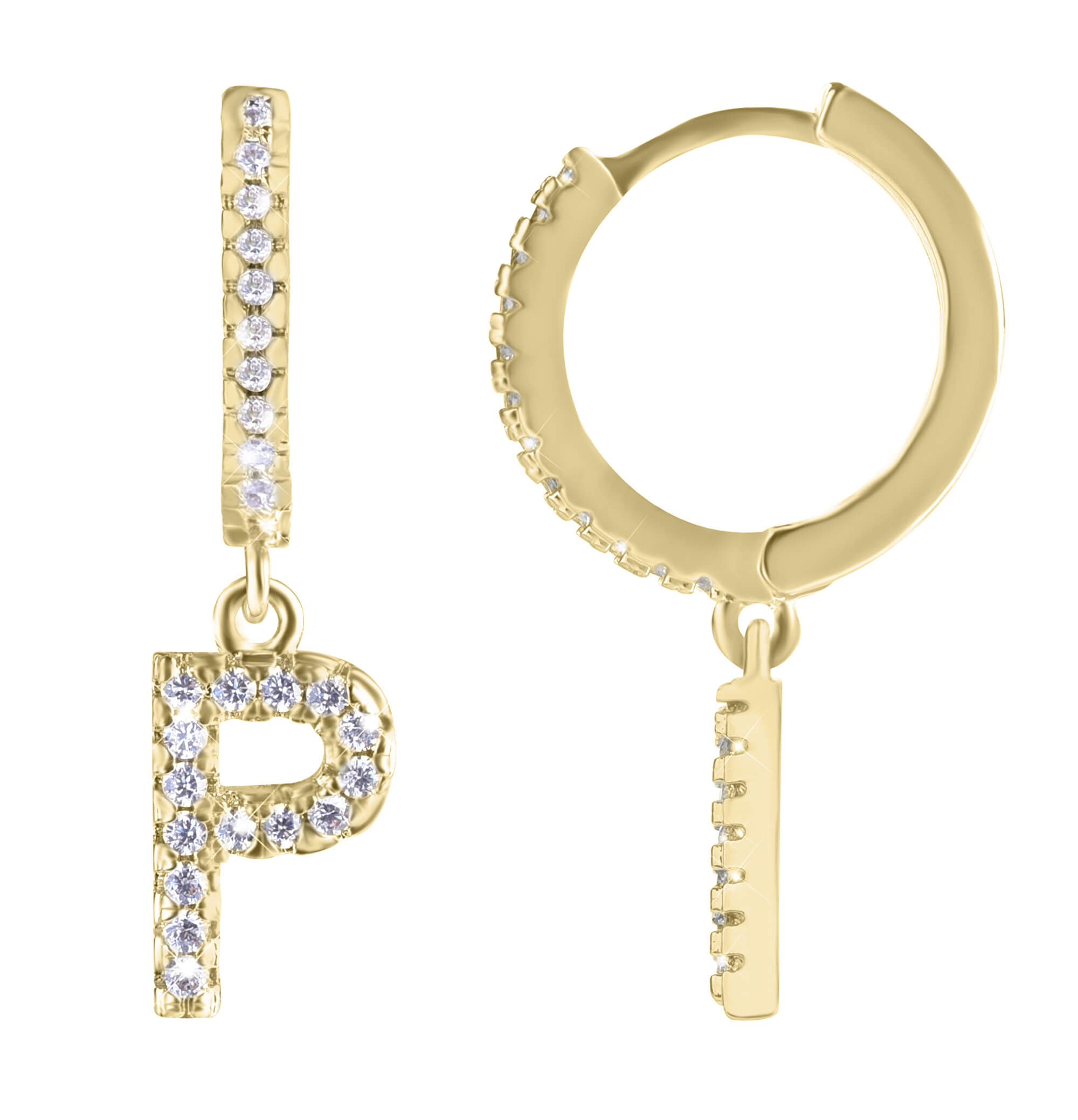 Troli Kruhová pozlacená single náušnice "P" se zirkony