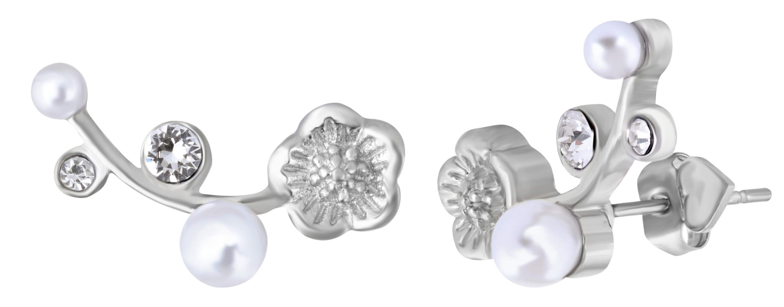 Troli Podélné ocelové náušnice s krystaly a perlami