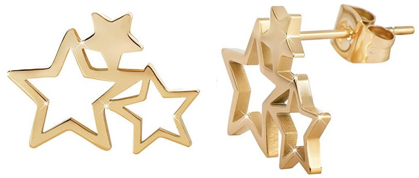 Troli Pozlacené ocelové náušnice se třemi hvězdičkami