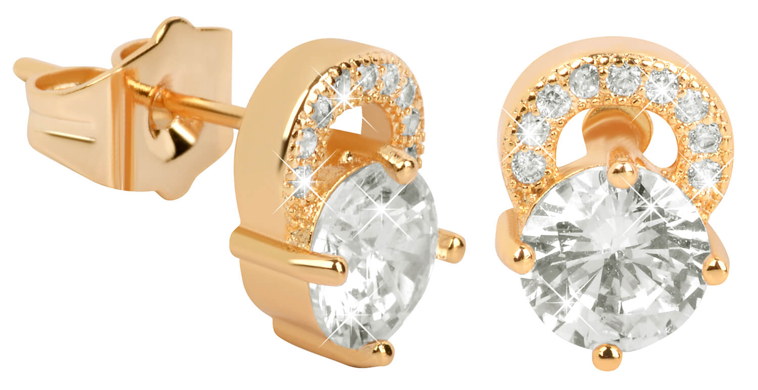 Troli Pozlacené třpytivé náušnice s čirými krystaly
