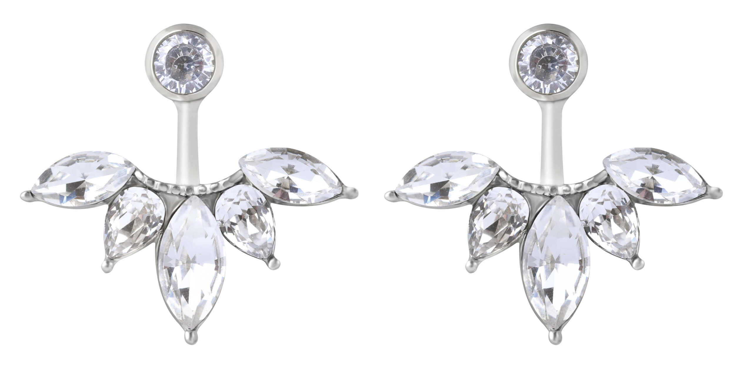 Troli Třpytivé ocelové náušnice s krystaly 2v1
